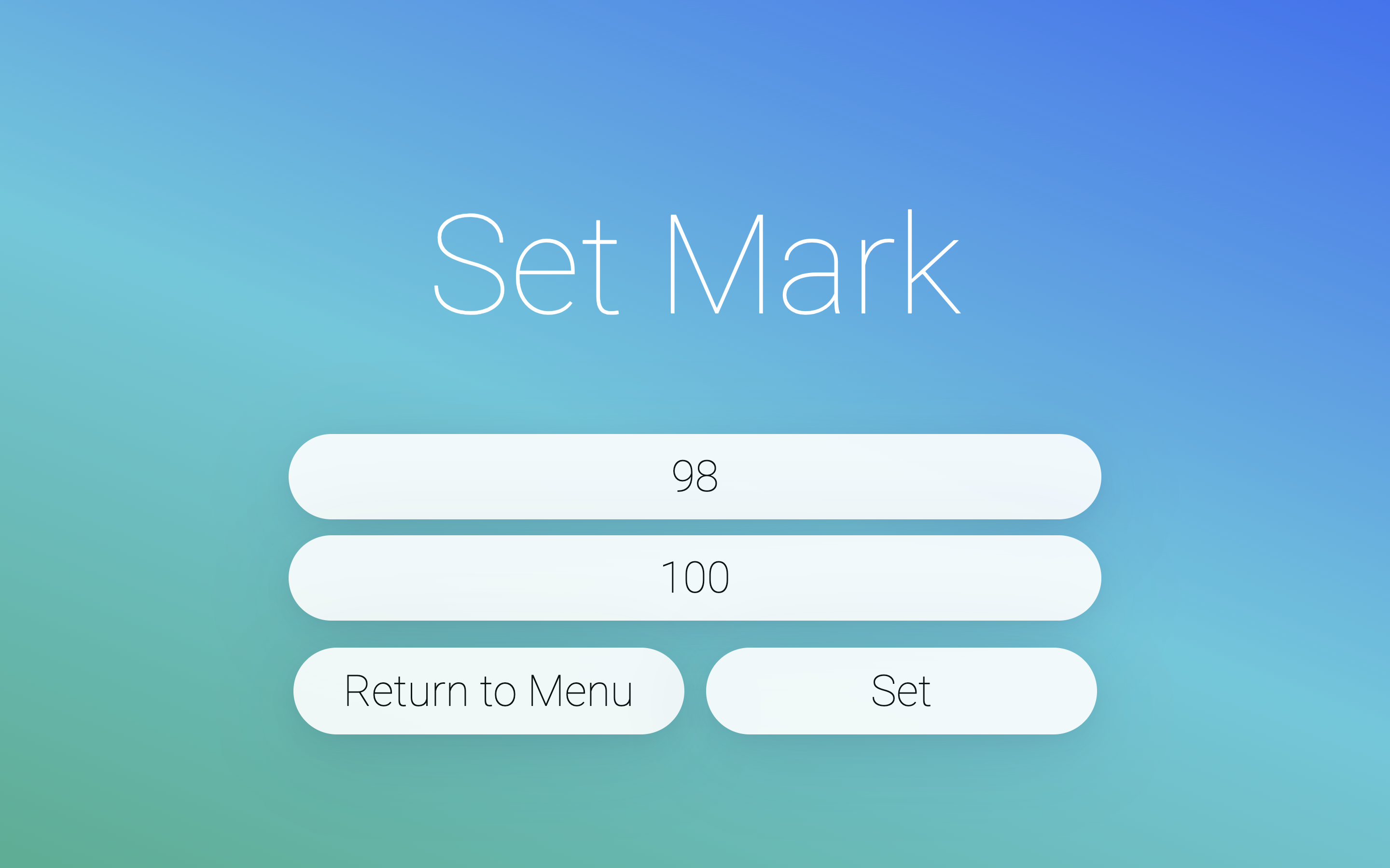 Set Markbutton. - You will be taken to the Set Mark screen. Enter your mark in the first box and the total mark in the second box. If you want to enter a percentage, enter your percentage score (90 for 90% etc.) in the first box and 100 in the second box, as shown below.