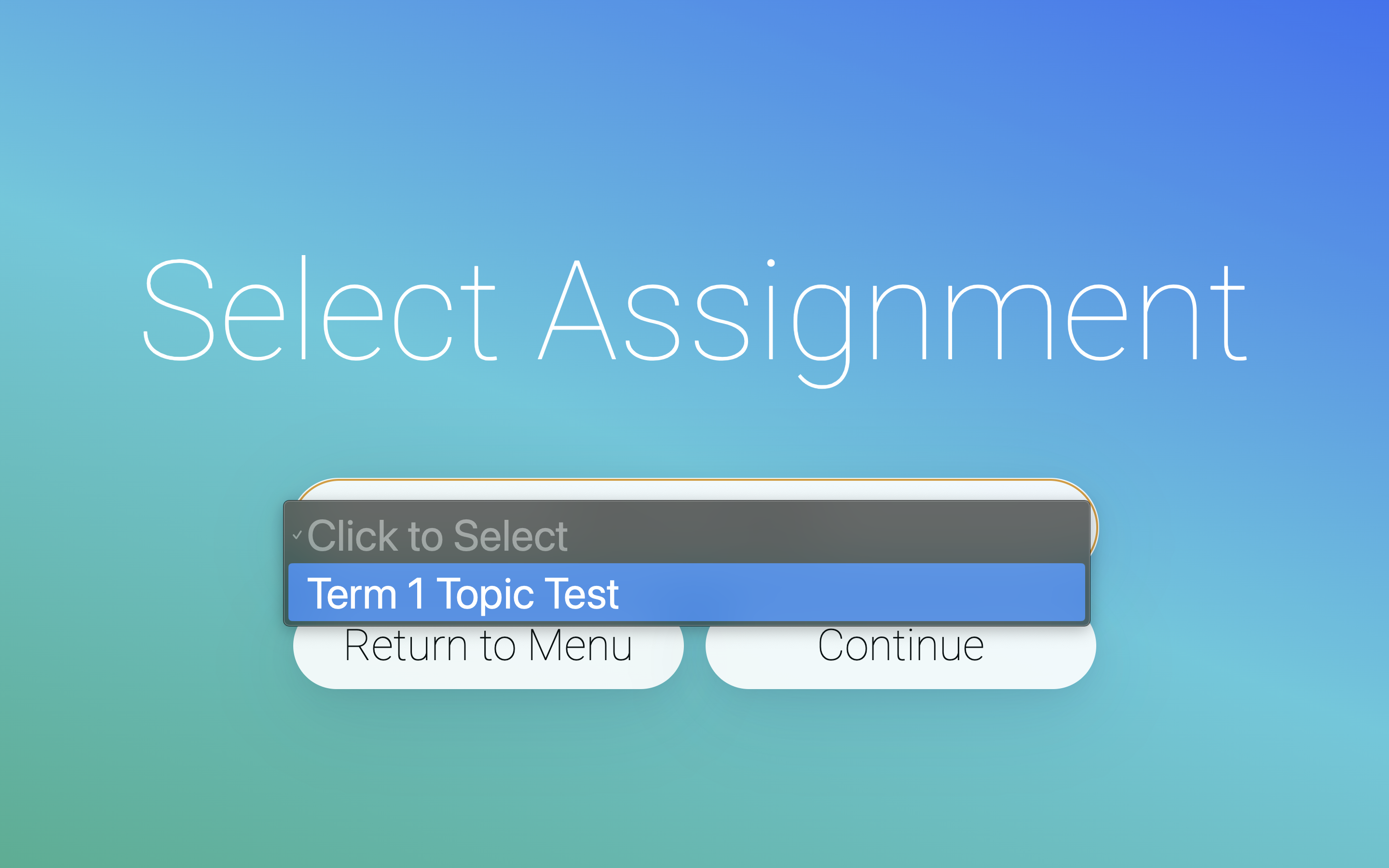 2. You will be taken to the Select Assignment Screen. Click on the Click to Select box to bring up a list of your assignments and select the one you wish to view.