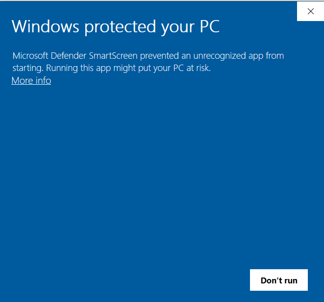 5. If this occurs, click on More Info and Run Anyway, as shown below.